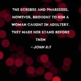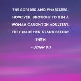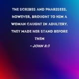 The scribes and Pharisees, however, brought to Him a woman caught in adultery. They made her stand before them