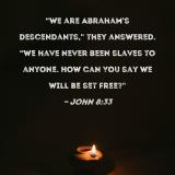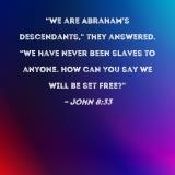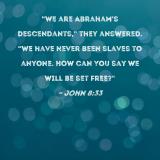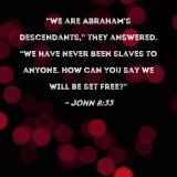 "We are Abraham's descendants," they answered. "We have never been slaves to anyone. How can You say we will be set free?"