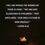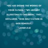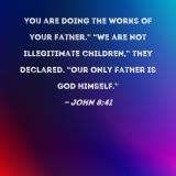 You are doing the works of your father." "We are not illegitimate children," they declared. "Our only Father is God Himself."
