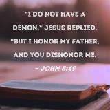 "I do not have a demon," Jesus replied, "but I honor My Father, and you dishonor Me.