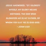 Jesus answered, "If I glorify Myself, My glory means nothing. The One who glorifies Me is My Father, of whom you say 'He is our God.'