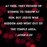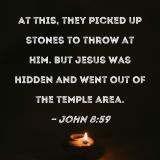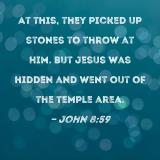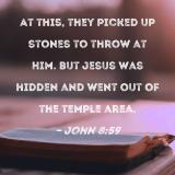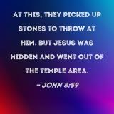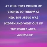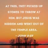 At this, they picked up stones to throw at Him. But Jesus was hidden and went out of the temple area.