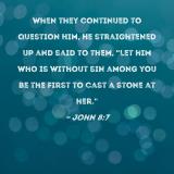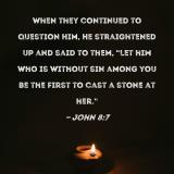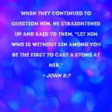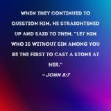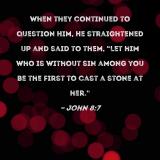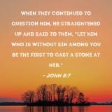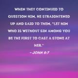 When they continued to question Him, He straightened up and said to them, "Let him who is without sin among you be the first to cast a stone at her."