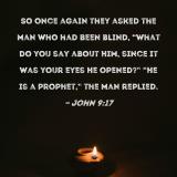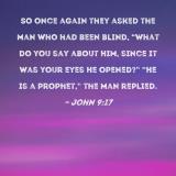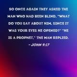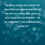 So once again they asked the man who had been blind, "What do you say about Him, since it was your eyes He opened?" "He is a prophet," the man replied.