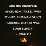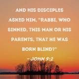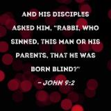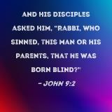 and His disciples asked Him, "Rabbi, who sinned, this man or his parents, that he was born blind?"