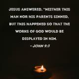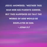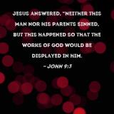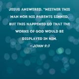 Jesus answered, "Neither this man nor his parents sinned, but this happened so that the works of God would be displayed in him.