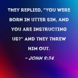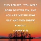 They replied, "You were born in utter sin, and you are instructing us?" And they threw him out.