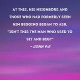 At this, his neighbors and those who had formerly seen him begging began to ask, "Isn't this the man who used to sit and beg?"