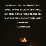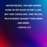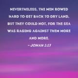 Nevertheless, the men rowed hard to get back to dry land, but they could not, for the sea was raging against them more and more.