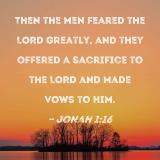 Then the men feared the LORD greatly, and they offered a sacrifice to the LORD and made vows to Him.