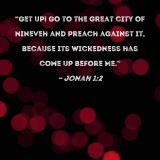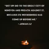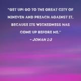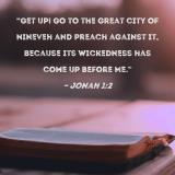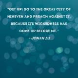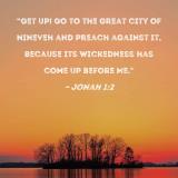 "Get up! Go to the great city of Nineveh and preach against it, because its wickedness has come up before Me."