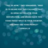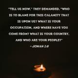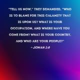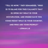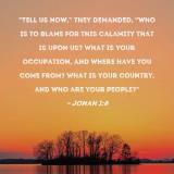 "Tell us now," they demanded, "who is to blame for this calamity that is upon us? What is your occupation, and where have you come from? What is your country, and who are your people?"
