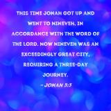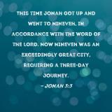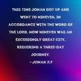 This time Jonah got up and went to Nineveh, in accordance with the word of the LORD. Now Nineveh was an exceedingly great city, requiring a three-day journey.