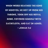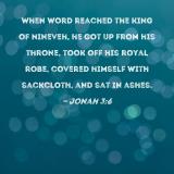 When word reached the king of Nineveh, he got up from his throne, took off his royal robe, covered himself with sackcloth, and sat in ashes.