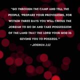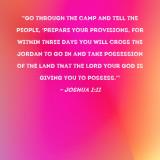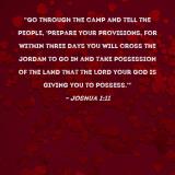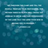"Go through the camp and tell the people, 'Prepare your provisions, for within three days you will cross the Jordan to go in and take possession of the land that the LORD your God is giving you to possess.'"
