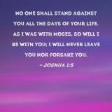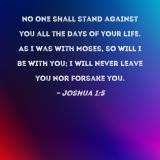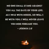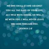 No one shall stand against you all the days of your life. As I was with Moses, so will I be with you; I will never leave you nor forsake you.