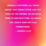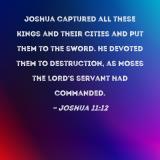 Joshua captured all these kings and their cities and put them to the sword. He devoted them to destruction, as Moses the LORD's servant had commanded.