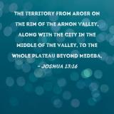 The territory from Aroer on the rim of the Arnon Valley, along with the city in the middle of the valley, to the whole plateau beyond Medeba,