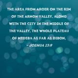 The area from Aroer on the rim of the Arnon Valley, along with the city in the middle of the valley, the whole plateau of Medeba as far as Dibon,