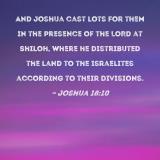 And Joshua cast lots for them in the presence of the LORD at Shiloh, where he distributed the land to the Israelites according to their divisions.