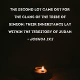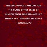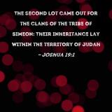 The second lot came out for the clans of the tribe of Simeon: Their inheritance lay within the territory of Judah