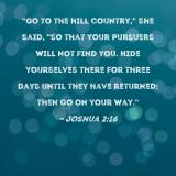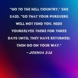 "Go to the hill country," she said, "so that your pursuers will not find you. Hide yourselves there for three days until they have returned; then go on your way."