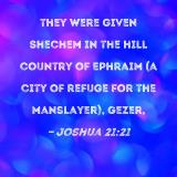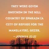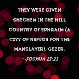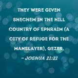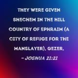 they were given Shechem in the hill country of Ephraim (a city of refuge for the manslayer), Gezer,