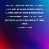 And the LORD gave them rest on every side, just as He had sworn to their fathers. None of their enemies could stand against them, for the LORD delivered all their enemies into their hand.
