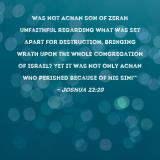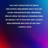 Was not Achan son of Zerah unfaithful regarding what was set apart for destruction, bringing wrath upon the whole congregation of Israel? Yet it was not only Achan who perished because of his sin!'"