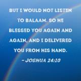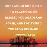 but I would not listen to Balaam. So he blessed you again and again, and I delivered you from his hand.