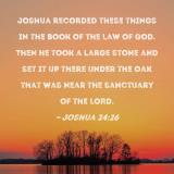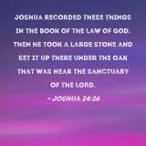 Joshua recorded these things in the Book of the Law of God. Then he took a large stone and set it up there under the oak that was near the sanctuary of the LORD.