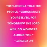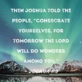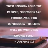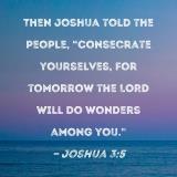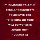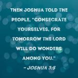 Then Joshua told the people, "Consecrate yourselves, for tomorrow the LORD will do wonders among you."