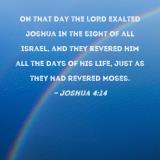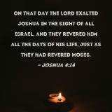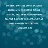 On that day the LORD exalted Joshua in the sight of all Israel, and they revered him all the days of his life, just as they had revered Moses.