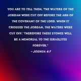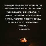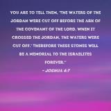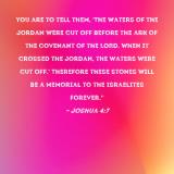 you are to tell them, 'The waters of the Jordan were cut off before the ark of the covenant of the LORD. When it crossed the Jordan, the waters were cut off.' Therefore these stones will be a memorial to the Israelites forever."