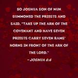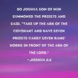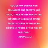 So Joshua son of Nun summoned the priests and said, "Take up the ark of the covenant and have seven priests carry seven rams' horns in front of the ark of the LORD."