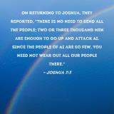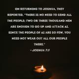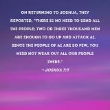 On returning to Joshua, they reported, "There is no need to send all the people; two or three thousand men are enough to go up and attack Ai. Since the people of Ai are so few, you need not wear out all our people there."