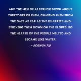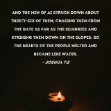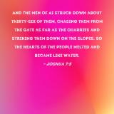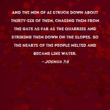 And the men of Ai struck down about thirty-six of them, chasing them from the gate as far as the quarries and striking them down on the slopes. So the hearts of the people melted and became like water.