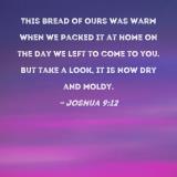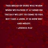 This bread of ours was warm when we packed it at home on the day we left to come to you. But take a look, it is now dry and moldy.