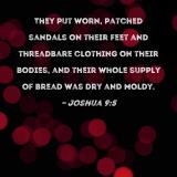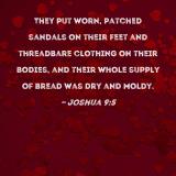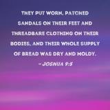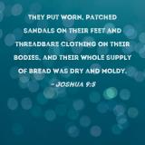 They put worn, patched sandals on their feet and threadbare clothing on their bodies, and their whole supply of bread was dry and moldy.
