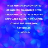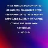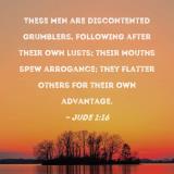 These men are discontented grumblers, following after their own lusts; their mouths spew arrogance; they flatter others for their own advantage.