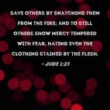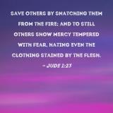save others by snatching them from the fire; and to still others show mercy tempered with fear, hating even the clothing stained by the flesh.
