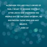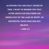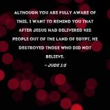Although you are fully aware of this, I want to remind you that after Jesus had delivered His people out of the land of Egypt, He destroyed those who did not believe.