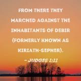 From there they marched against the inhabitants of Debir (formerly known as Kiriath-sepher).