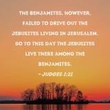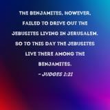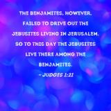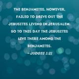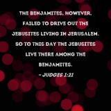 The Benjamites, however, failed to drive out the Jebusites living in Jerusalem. So to this day the Jebusites live there among the Benjamites.