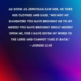 As soon as Jephthah saw her, he tore his clothes and said, "No! Not my daughter! You have brought me to my knees! You have brought great misery upon me, for I have given my word to the LORD and cannot take it back."
