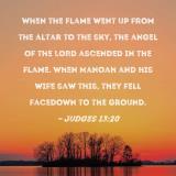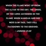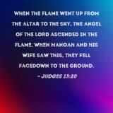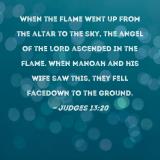 When the flame went up from the altar to the sky, the angel of the LORD ascended in the flame. When Manoah and his wife saw this, they fell facedown to the ground.