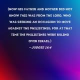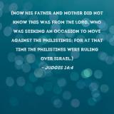 (Now his father and mother did not know this was from the LORD, who was seeking an occasion to move against the Philistines; for at that time the Philistines were ruling over Israel.)
