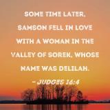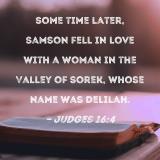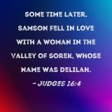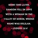 Some time later, Samson fell in love with a woman in the Valley of Sorek, whose name was Delilah.