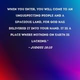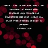 When you enter, you will come to an unsuspecting people and a spacious land, for God has delivered it into your hand. It is a place where nothing on earth is lacking."
