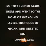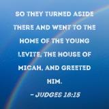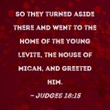 So they turned aside there and went to the home of the young Levite, the house of Micah, and greeted him.